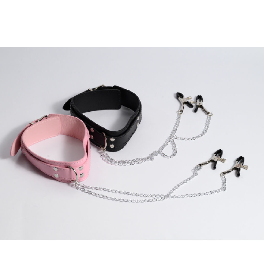 Fino collar de cuero sintético de color negro ajustable con sistema de hebilla, unido a cadenas atadas a dos pinzas para pezones. Ideal para que lleves el estilo Bondage a tu habitación una manera cómoda y segura. Apropiado para aquellos que quieren introducir mayor erotismo en su vida y no temen un poco de acción. Un juego erótico que te llenará de placer. Características: - Material: cuero sintético - Incluye cadenas y pinzas para pezones - Tamaño: 37 CM de largo y 4 de alto